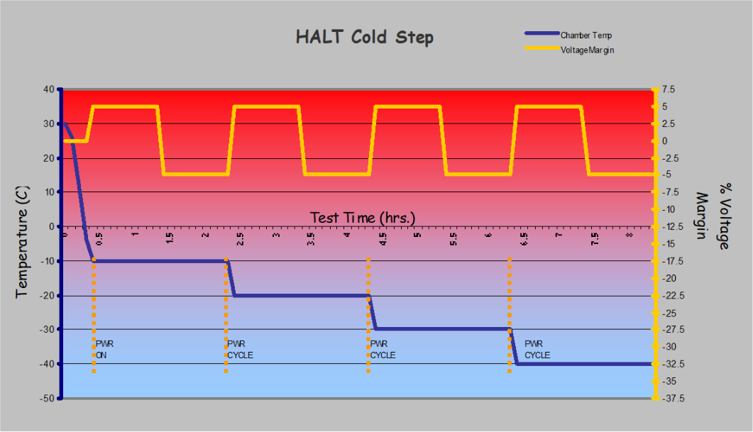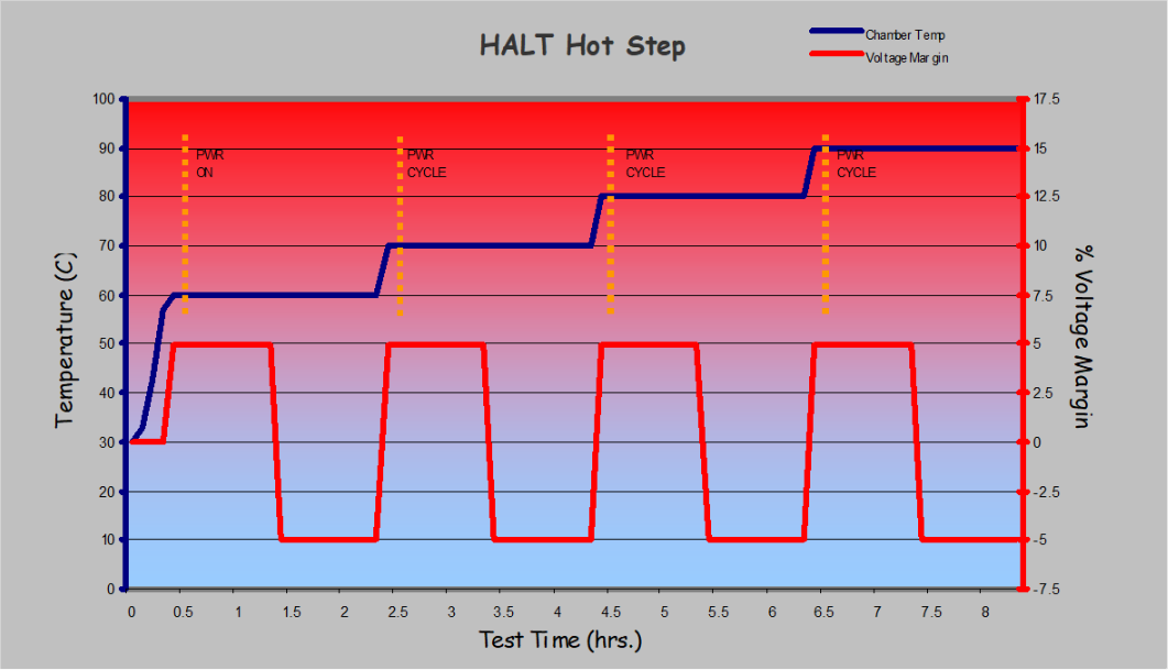 没有行业标准的HALT测试剖面。HALT测试剖面应根据特定程序的需求进行定制。我们在Cisco测试电信产品方面的经验促成了以下三阶段剖面的设计。