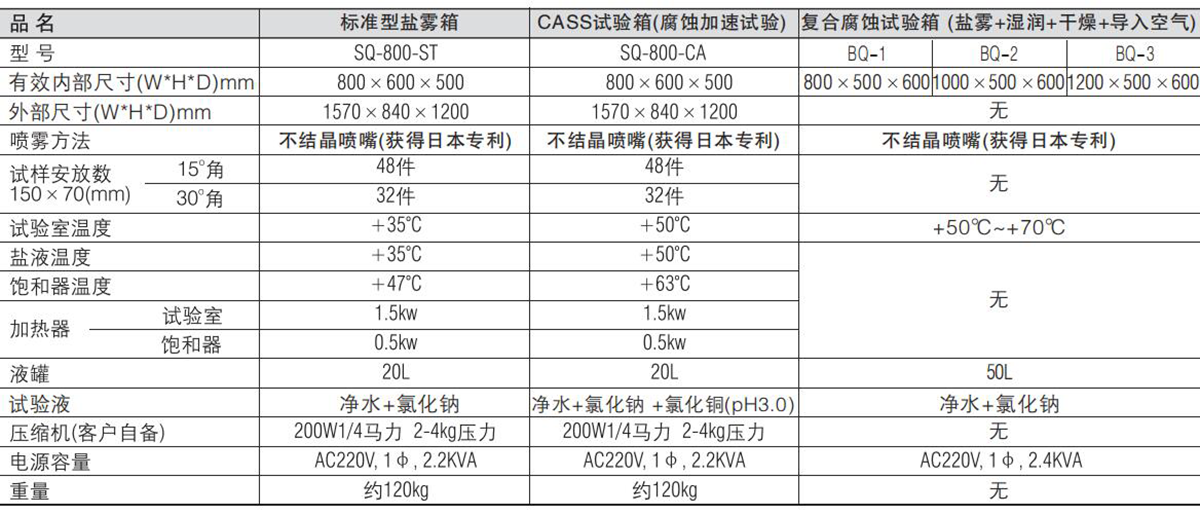 荣获日本不结晶喷嘴专利,标准型盐雾箱、CASS试验箱(腐蚀加速试验)、复合腐蚀试验箱 (盐雾+湿润+干燥+导入空气)。▶获取产品规格书▶快速获取产品报价